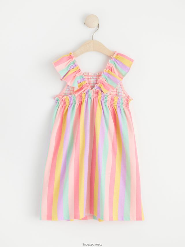 une robe sans manches douce et confortable avec des épaules volantées, une smockée sur la poitrine et un imprimé intégral. matériel. cette pièce est partiellement réalisée en coton biologique. le coton biologique est cultivé sans produits chimiques toxiques ni graines de coton génétiquement modifiées. la culture protège la biodiversité, les écosystèmes et les personnes en utilisant des processus naturels plutôt que des intrants artificiels.