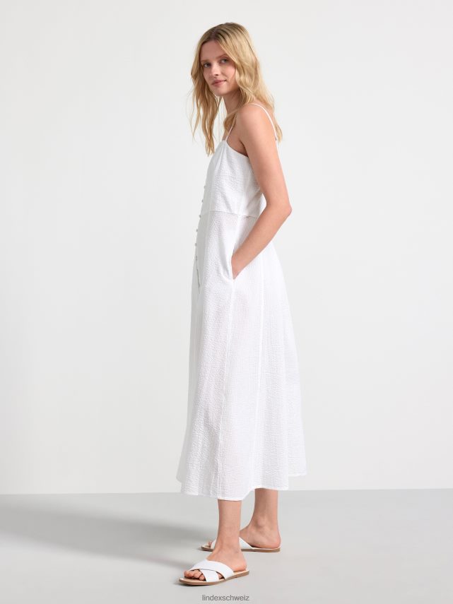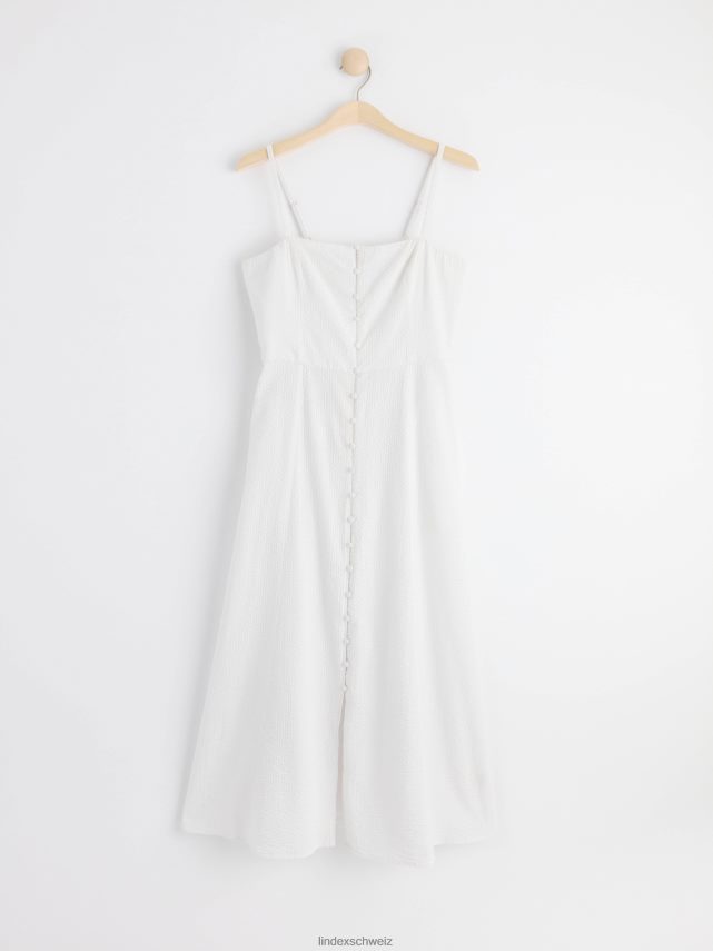 une robe fluide sans manches en seersucker confectionnée en coton doux, parfaite pour les mois les plus chauds.
