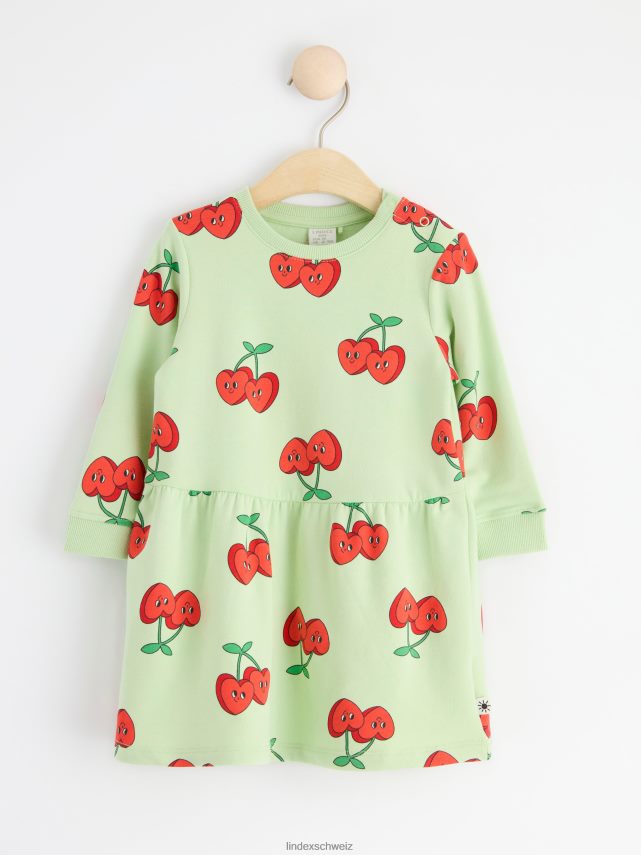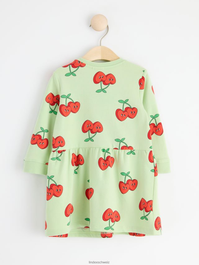 une robe douce et chaude en matière sweat-shirt et avec un imprimé cœur cerise sur toute la surface. matériel. c’est une pièce certifiée Gots. il est fabriqué à partir de coton biologique et chaque étape de la production a été certifiée de manière indépendante pour garantir qu’elle respecte les exigences sociales et environnementales de Gots (norme mondiale des textiles biologiques).