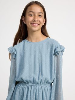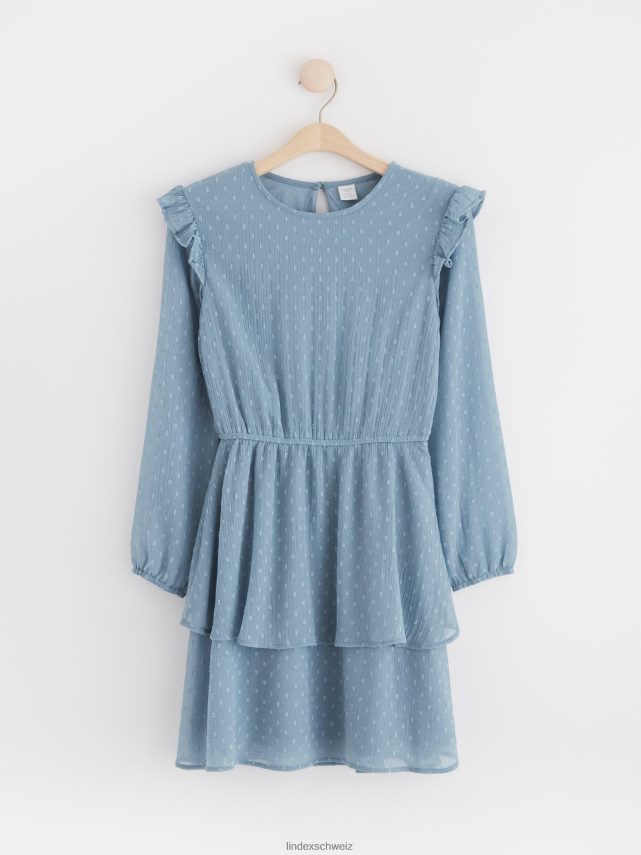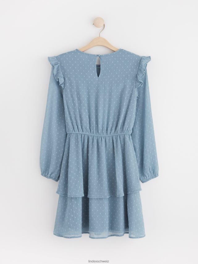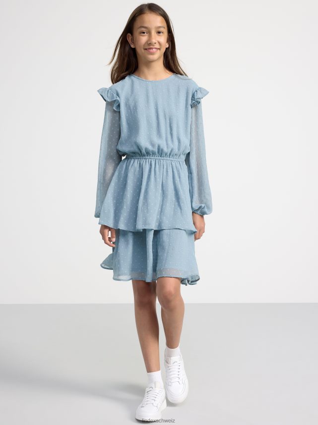 robe volantée à manches longues bleu poussiéreux Lindex vêtements enfants D44L8F3111