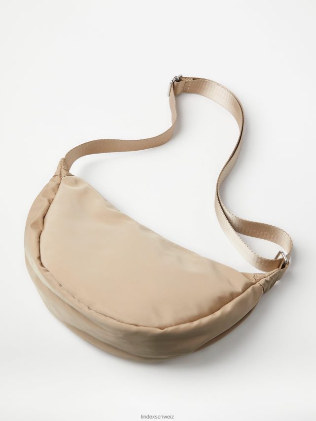 Sac bandoulière légèrement rembourré avec une bandoulière réglable et une fermeture éclair en métal. le sac a un grand compartiment avec deux petites poches à l’intérieur.