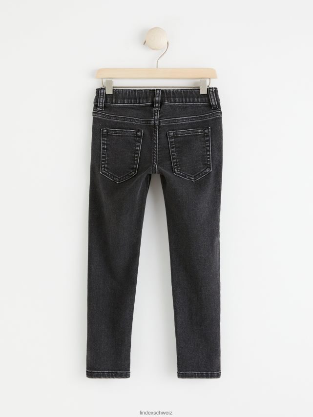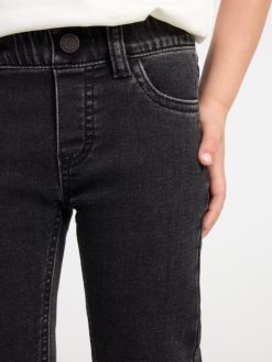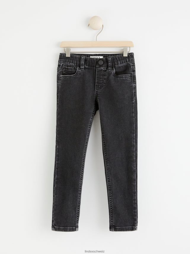 Jean pull-up confortable et super extensible avec une jambe fine et une taille régulière réglable.