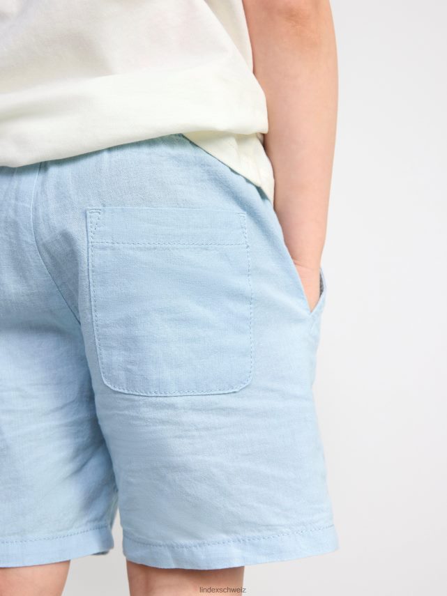 un short confortable en mélange doux de coton et de lin avec une taille classique et des jambes droites. le short a une taille élastiquée réglable, des poches latérales en diagonale et une poche à l’arrière.