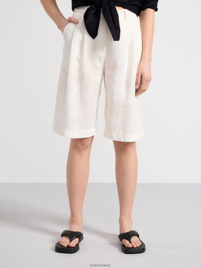 Short élégant jusqu’aux genoux en pur lin avec plis sur le devant, poches latérales et fausses poches passepoilées à l’arrière. prime. il s’agit d’une pièce de qualité supérieure en lin. le lin est une matière naturelle aérée, durable et confortable à porter.