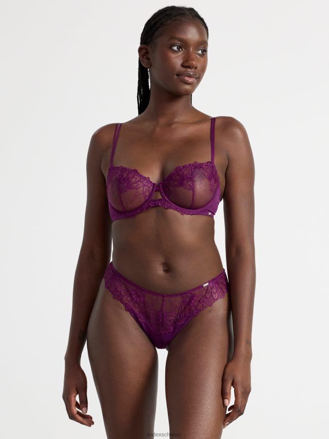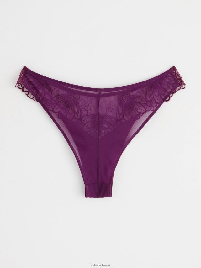 culotte brésilienne avec taille standard et détails en mesh et dentelle.