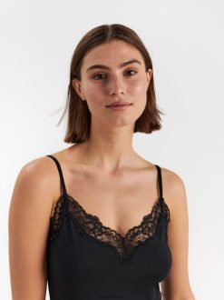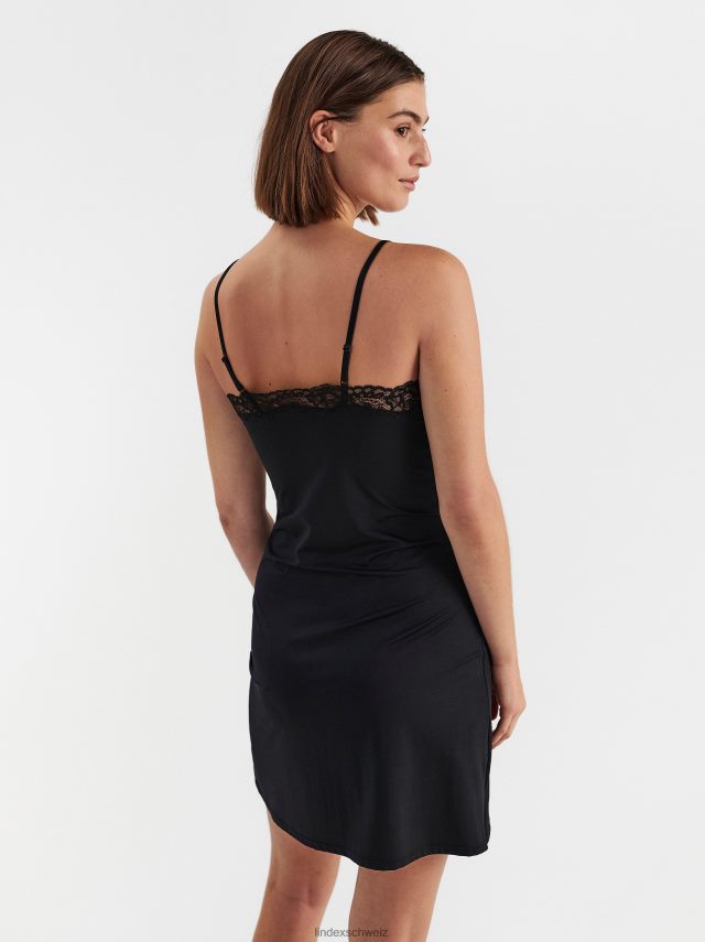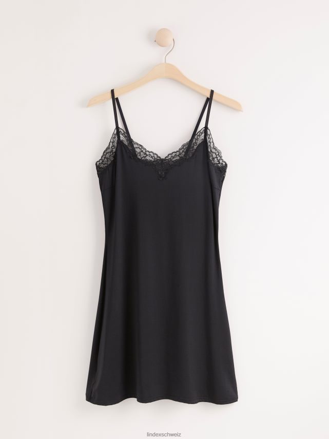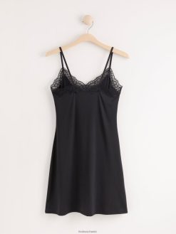 une magnifique combinaison noire de qualité douce et brillante avec une bordure en dentelle transparente.