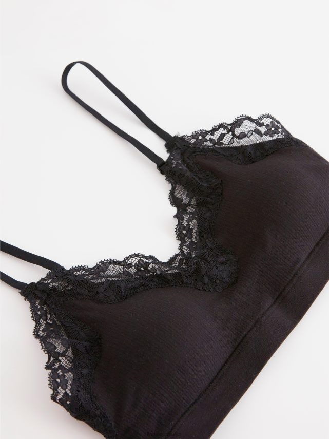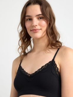 un soutien-gorge super doux et sans armatures avec un léger rembourrage et une bordure en dentelle sur le devant. matériel. cette pièce est partiellement fabriquée en modal tencel, une option plus durable par rapport au modal conventionnel. le matériau provient d’une foresterie responsable et est produit avec un impact moindre sur l’environnement.