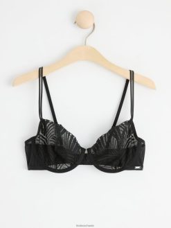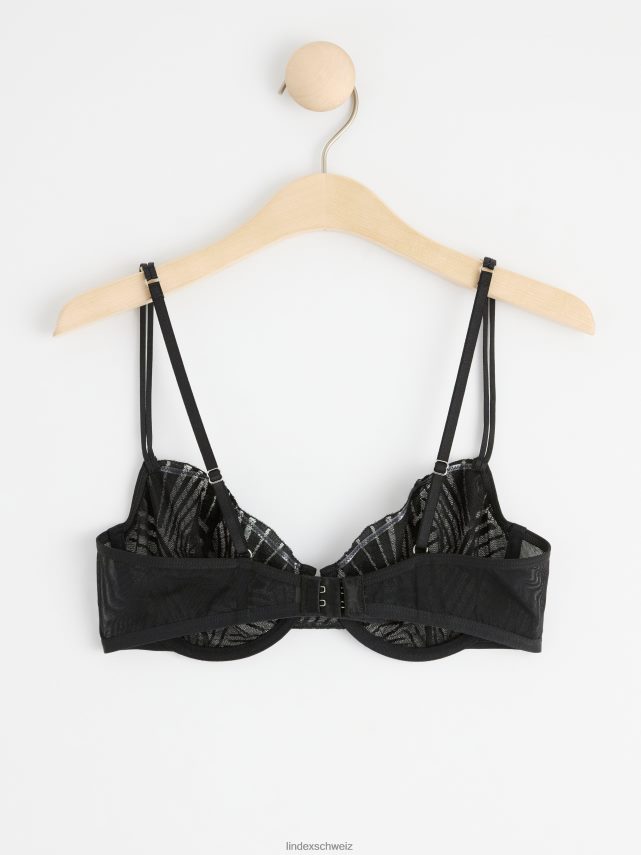 un soutien-gorge à armatures non rembourré avec broderie en dentelle, fabriqué dans un tissu en maille douce.