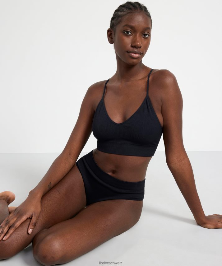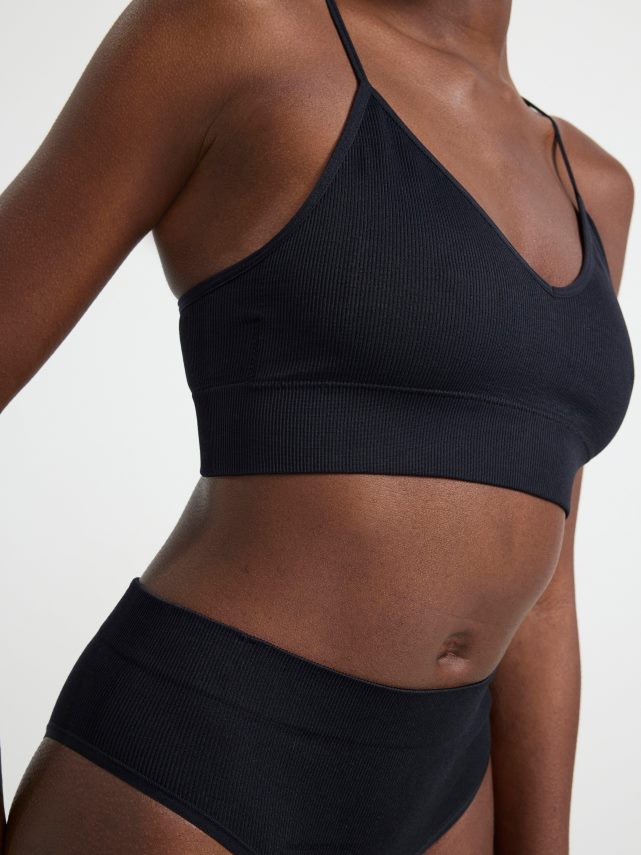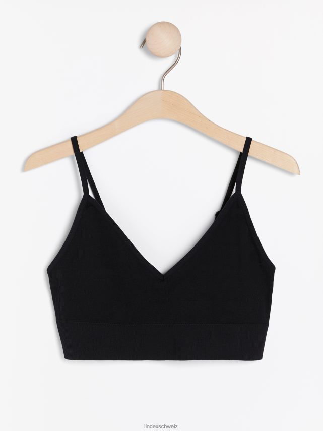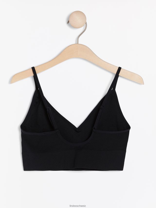 soutien-gorge souple côtelé sans couture à col en V noir Lindex vêtements femmes D44L8F1555