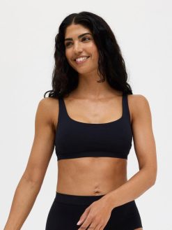 un soutien-gorge sans couture ultra doux avec un décolleté en V profond, de larges bretelles sur le devant et de fines bretelles réglables dans le dos. matériel. cette pièce est partiellement fabriquée en modal tencel, une option plus durable par rapport au modal conventionnel. le matériau provient d’une foresterie responsable et est produit avec un impact moindre sur l’environnement.