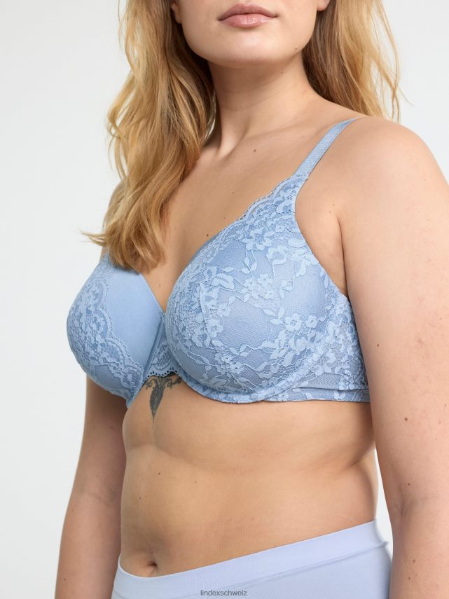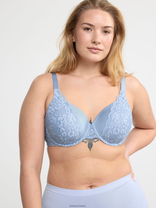 Soutien-gorge t-shirt dans notre coupe Dahlia, avec un niveau de couvrance totale, un rembourrage doux et fin et de magnifiques détails en dentelle transparente.