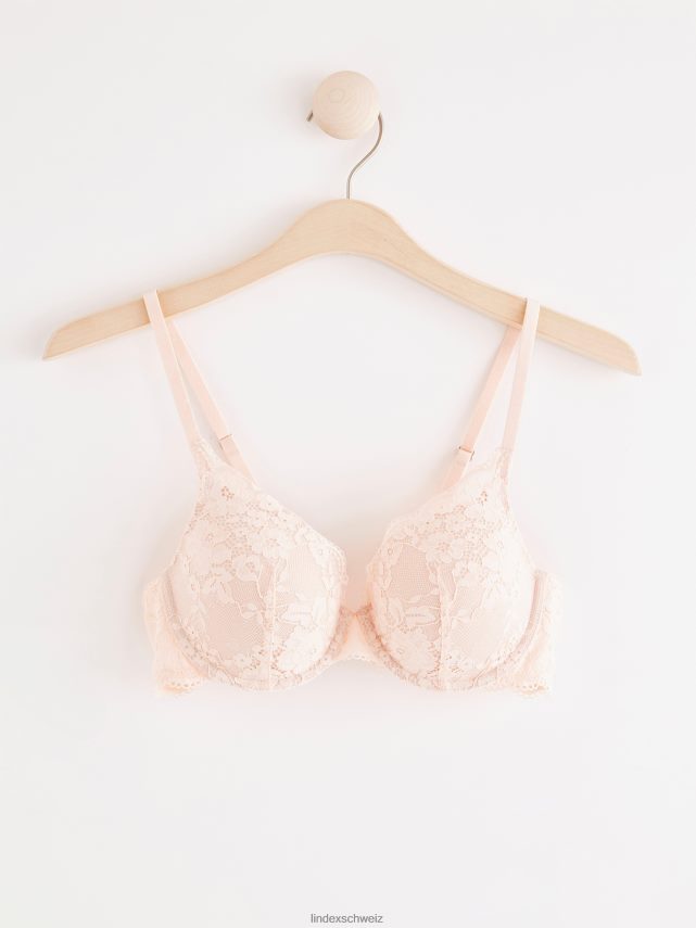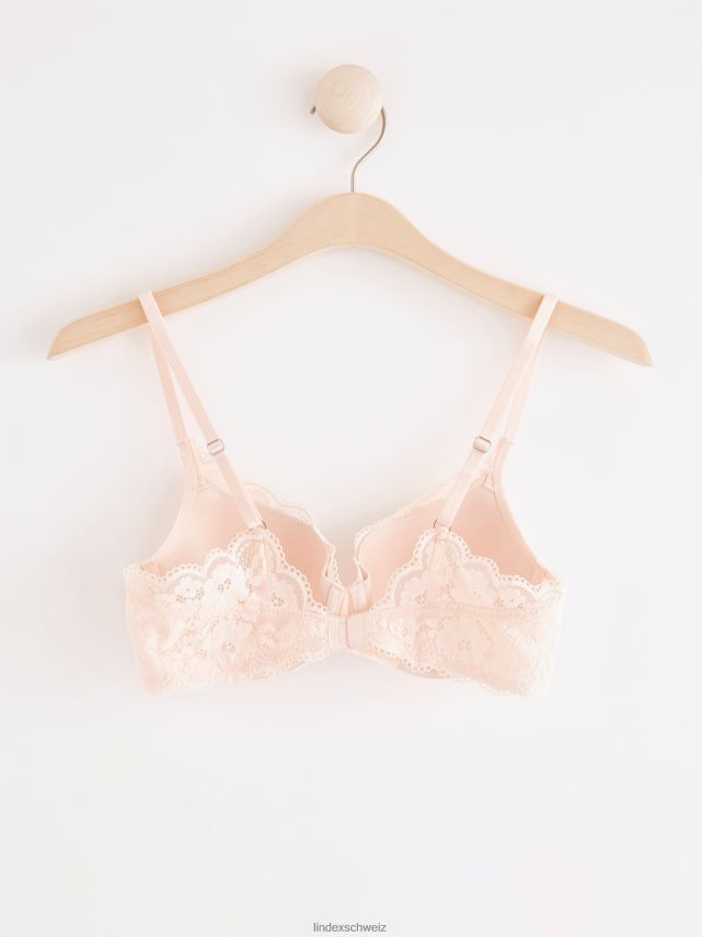 un soutien-gorge t-shirt confortable recouvert de dentelle douce avec de fines bordures festonnées. les bonnets moulés sont dotés d’un rembourrage fin et d’une couverture midi.