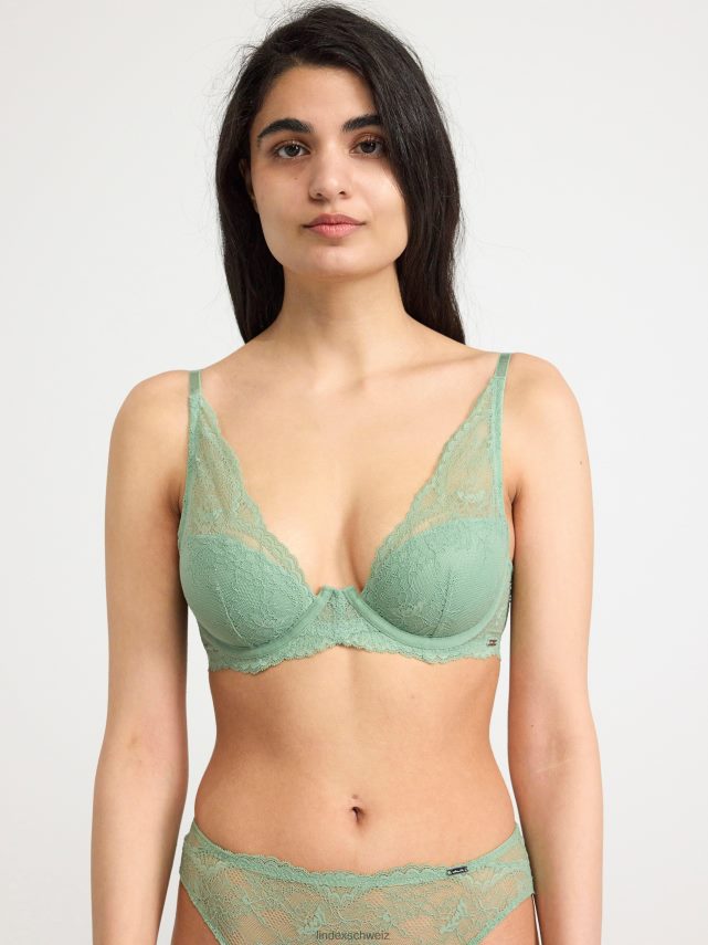 Soutien-gorge t-shirt rembourré avec résille et dentelle florale sur toute la surface.