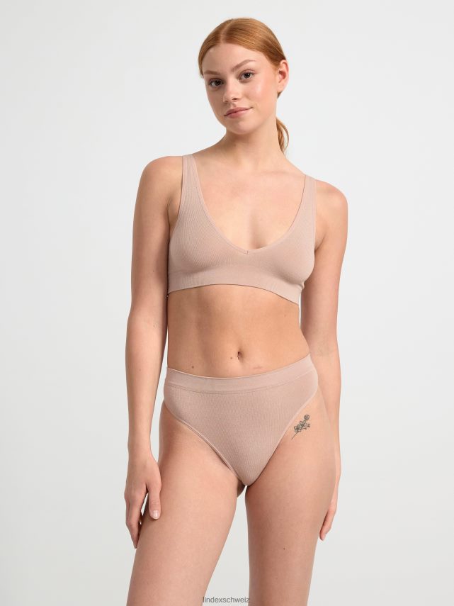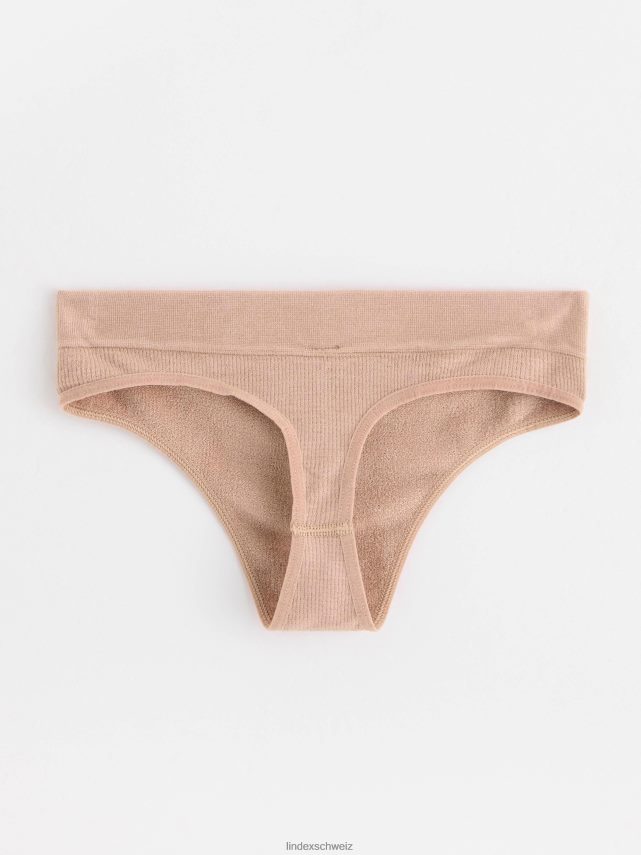 un string taille standard sans couture avec des coupes hautes et fabriqué dans un matériau doux et côtelé. matériel. cette pièce est partiellement fabriquée en modal tencel, une option plus durable par rapport au modal conventionnel. le matériau provient d’une foresterie responsable et est produit avec un impact moindre sur l’environnement.