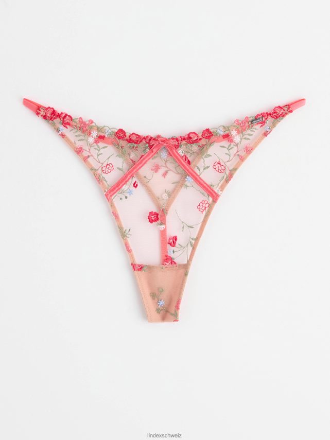 string taille basse avec de beaux détails en résille et dentelle florale.