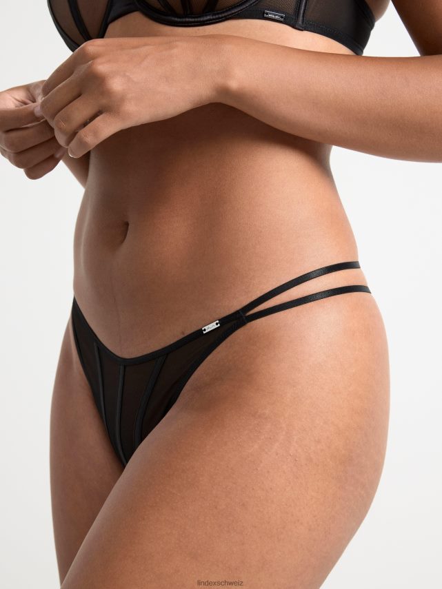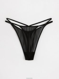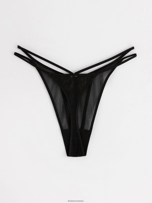 string taille basse, réalisé en maille douce avec rayures en satin sur le devant.