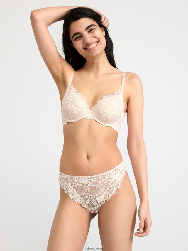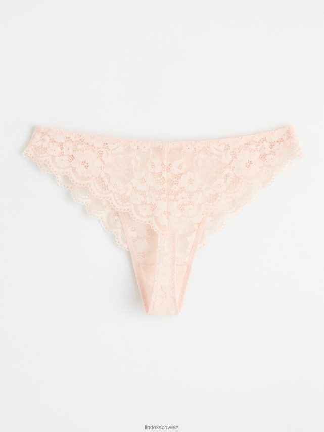 string taille classique avec maille et dentelle florale sur toute la surface.