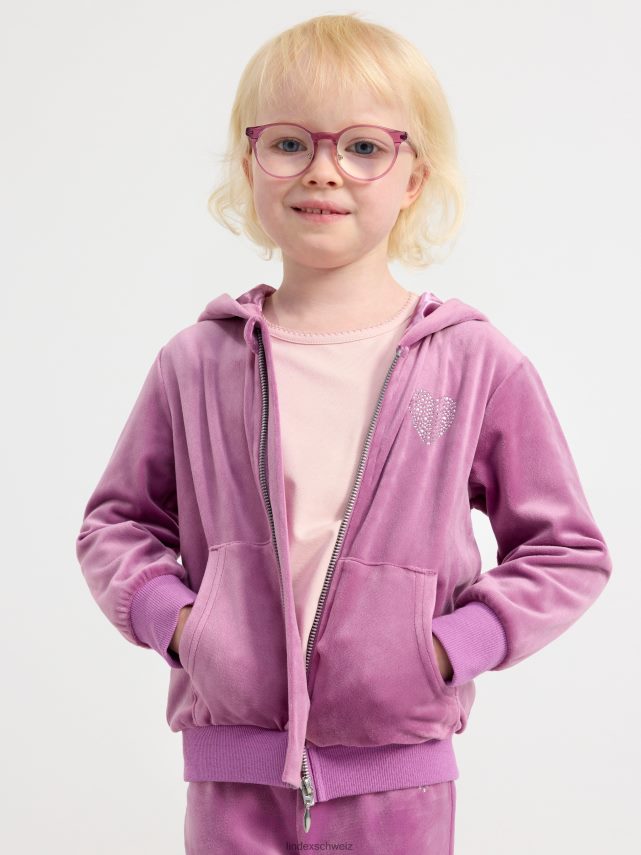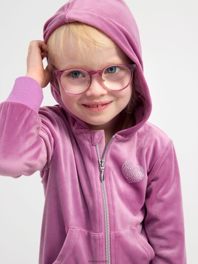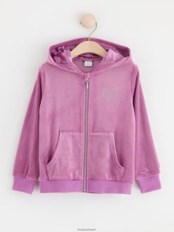 sweat à capuche zippé en velours lilas poussiéreux foncé Lindex vêtements enfants D44L8F3431