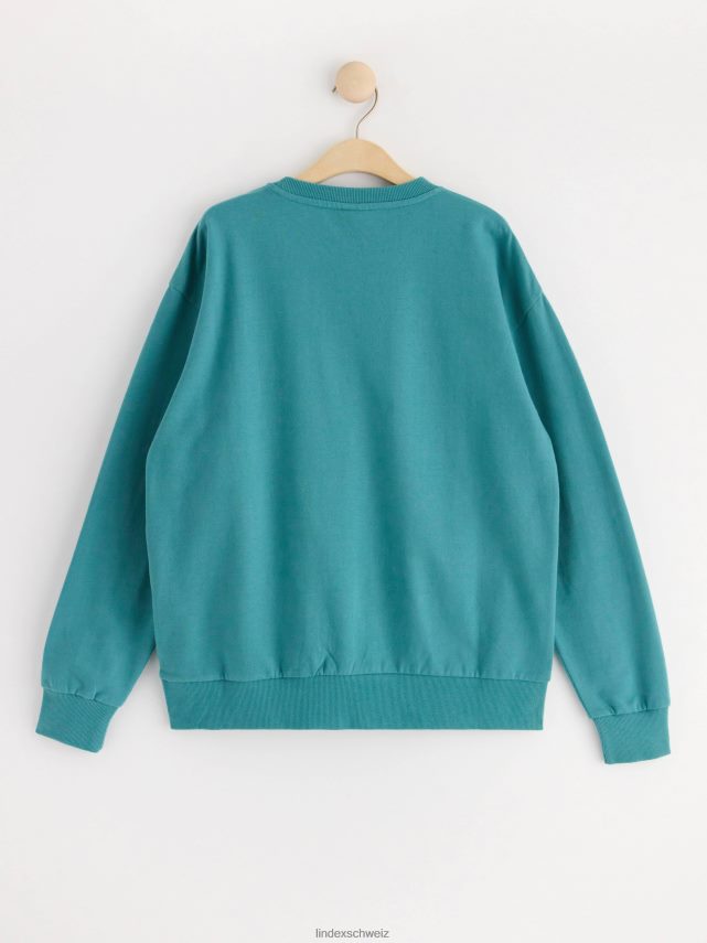 sweat-shirt en coton biologique à manches longues, une encolure ronde, un imprimé sur le devant et un intérieur brossé.