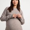 édition en ligne. un sweat-shirt confortable avec col montant et épaules tombantes, conçu avec plus d’espace pour le ventre en pleine croissance. fabriqué en coton biologique.