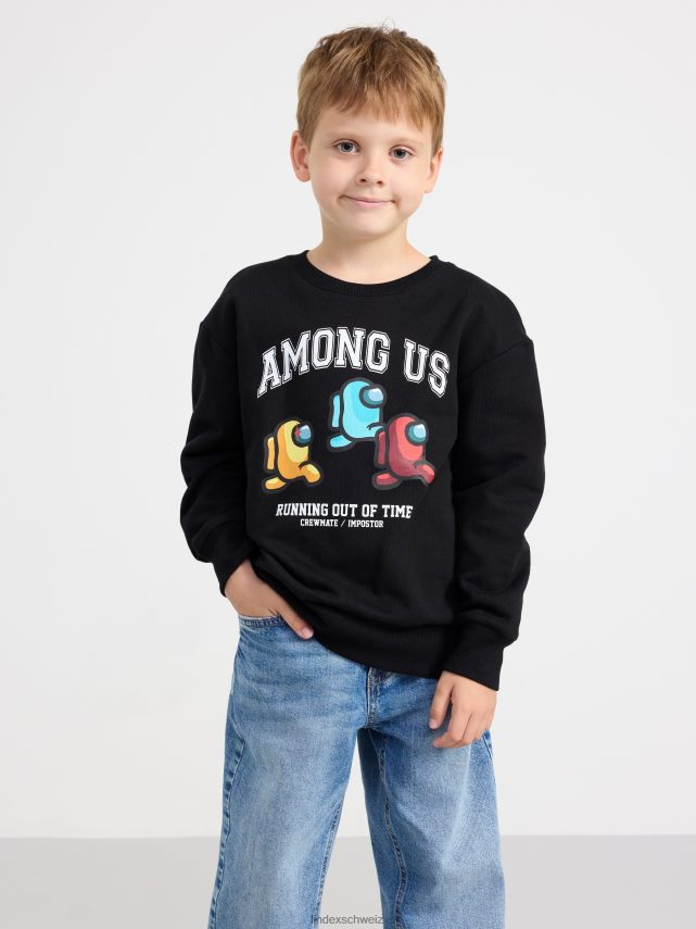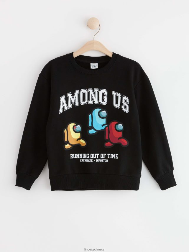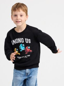 un sweat-shirt confortable à col rond avec un grand imprimé Among Us sur le devant.