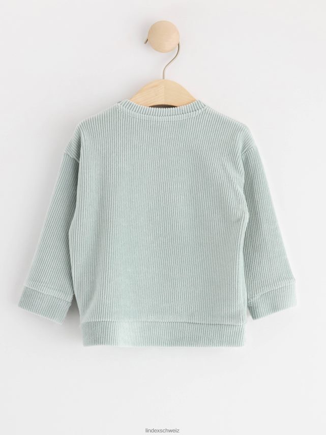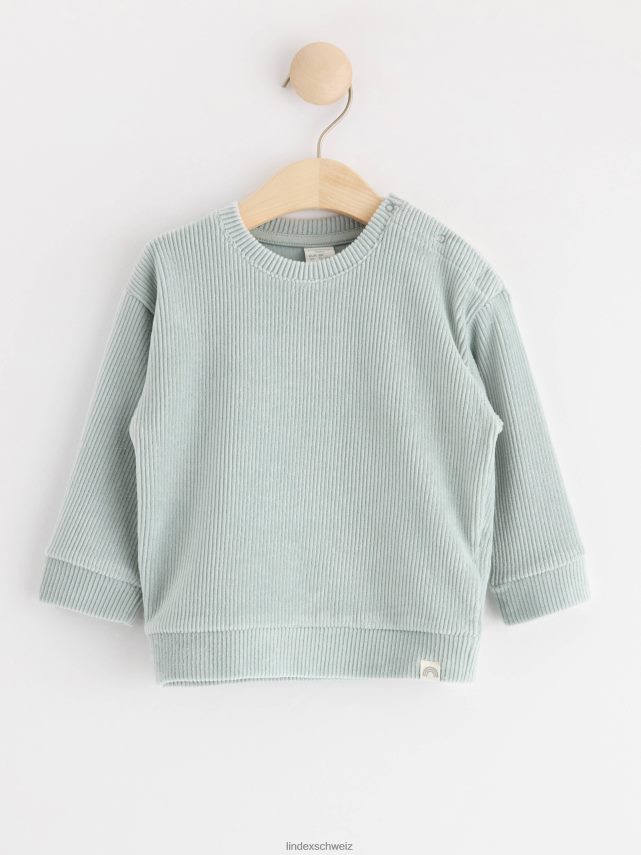 sweat-shirt en velours côtelé turquoise légèrement poussiéreux Lindex vêtements bébé D44L8F3872