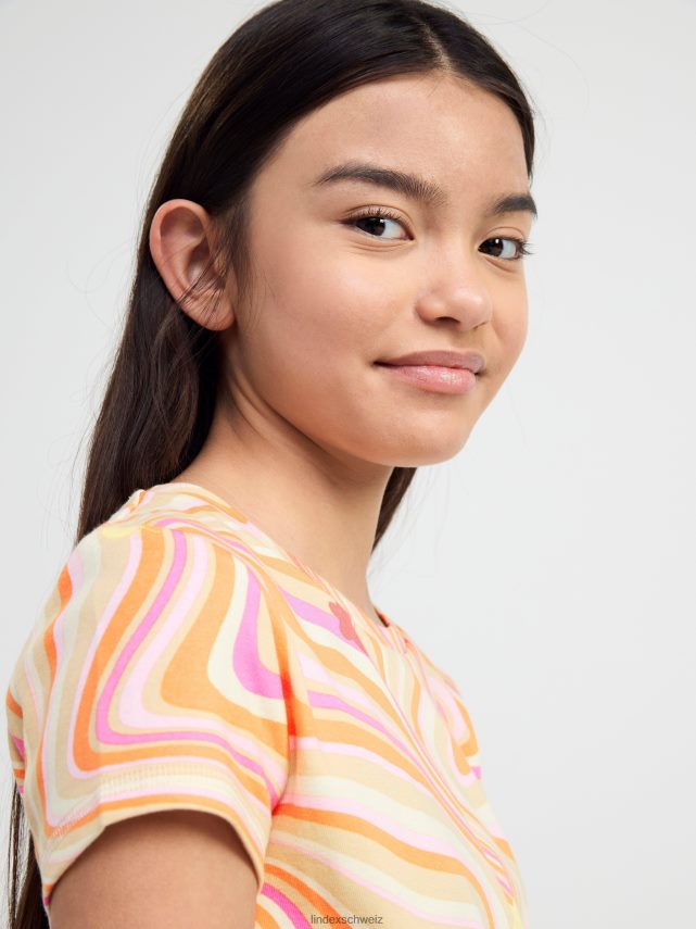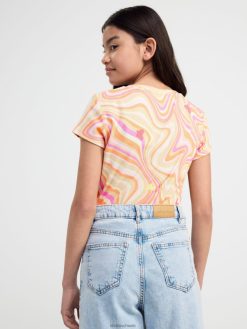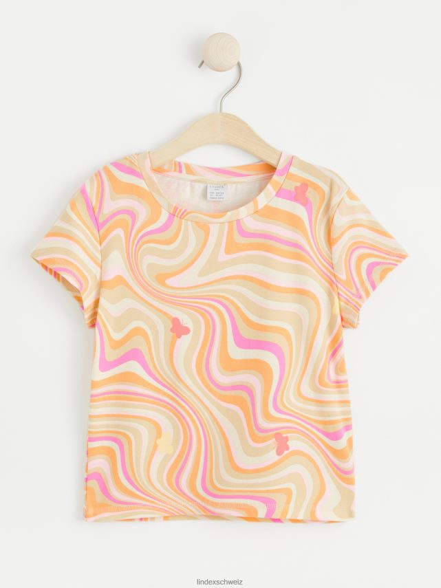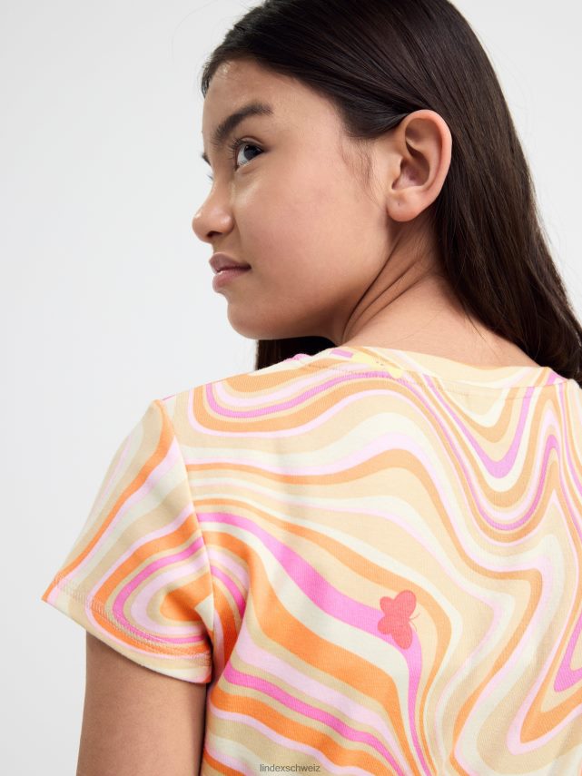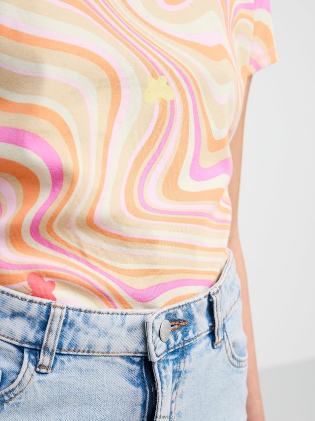 un haut à manches courtes avec un imprimé intégral. matériel. c’est une pièce certifiée Gots. il est fabriqué à partir de coton biologique et chaque étape de la production a été certifiée de manière indépendante pour garantir qu’elle respecte les exigences sociales et environnementales de Gots (norme mondiale des textiles biologiques).