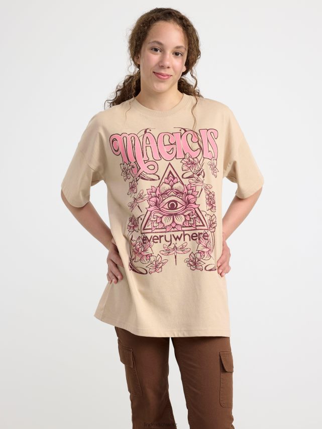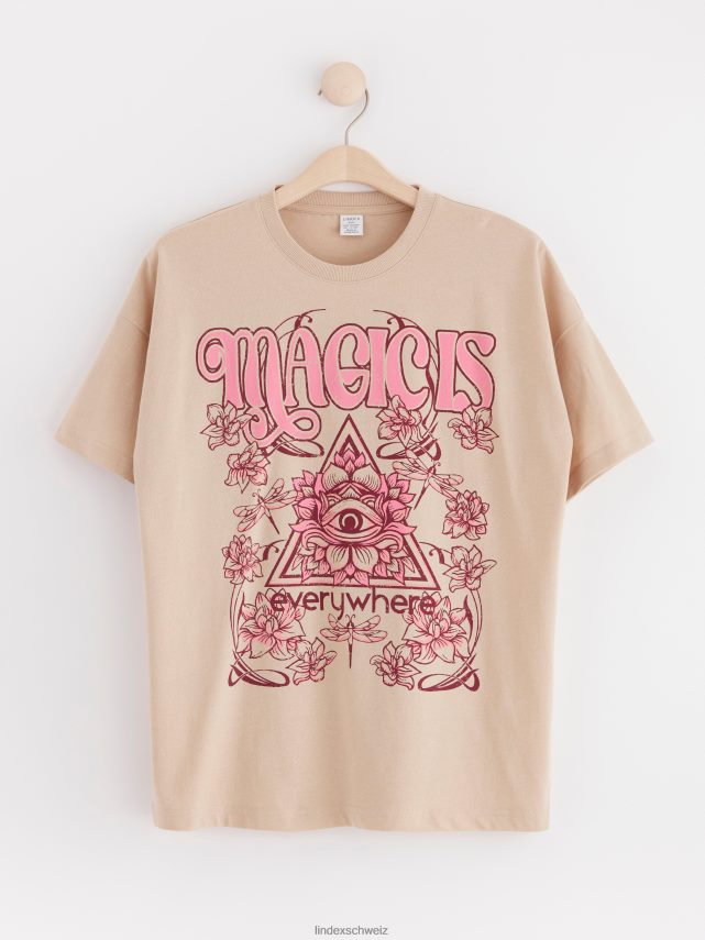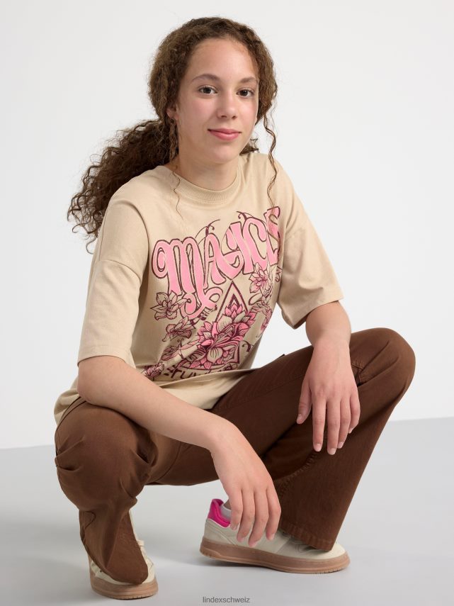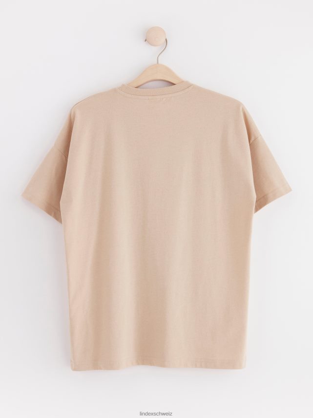un t-shirt confortable à manches courtes avec imprimé sur le devant et épaules tombantes pour un look décontracté. matériel. cette pièce est confectionnée en coton recyclé. en utilisant du coton recyclé, cela signifie que le coton qui a déjà été cultivé et qui aurait été gaspillé a une autre chance. il est beaucoup plus économe en ressources et en eau par rapport à la culture de nouveau coton