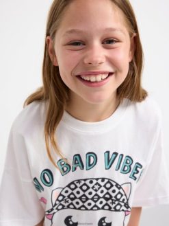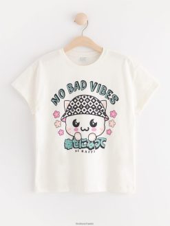 un t-shirt confortable à manches courtes avec imprimé sur le devant et épaules tombantes pour un look décontracté.