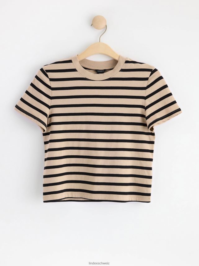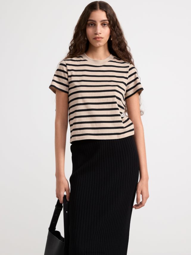 un t-shirt rayé en jersey de coton doux avec des manches courtes et un col rond classique. matériel. cette pièce est partiellement réalisée en coton biologique. le coton biologique est cultivé sans produits chimiques toxiques ni graines de coton génétiquement modifiées. la culture préserve la biodiversité, les écosystèmes et les personnes en utilisant des processus naturels plutôt que des intrants artificiels.