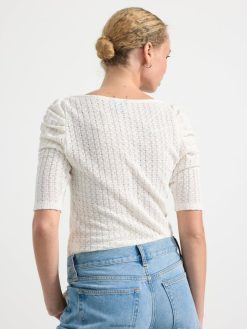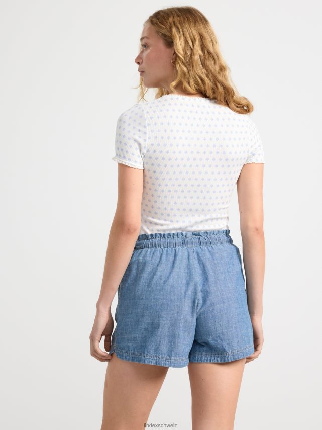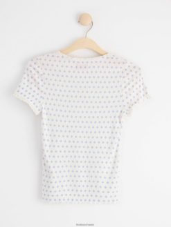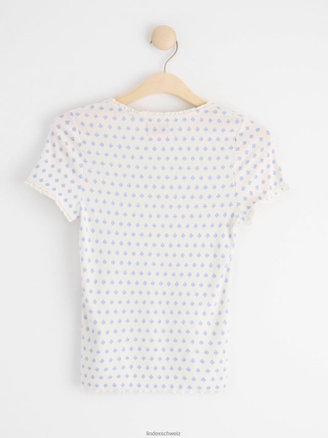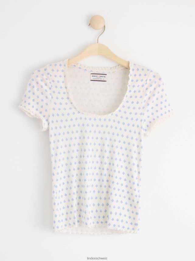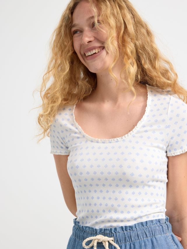 un haut à manches courtes doux et élégant dans une matière côtelée et avec un imprimé floral intégral. matériel. cette pièce est basée une fois de plus sur sodra, une nouvelle matière première innovante en fibre de viscose, où des textiles recyclés sont combinés avec du bois issu de forêts gérées de manière responsable. Oncemore est un matériau de haute qualité et est produit avec un impact moindre sur l’environnement par rapport aux matières premières en fibre de viscose conventionnelles.