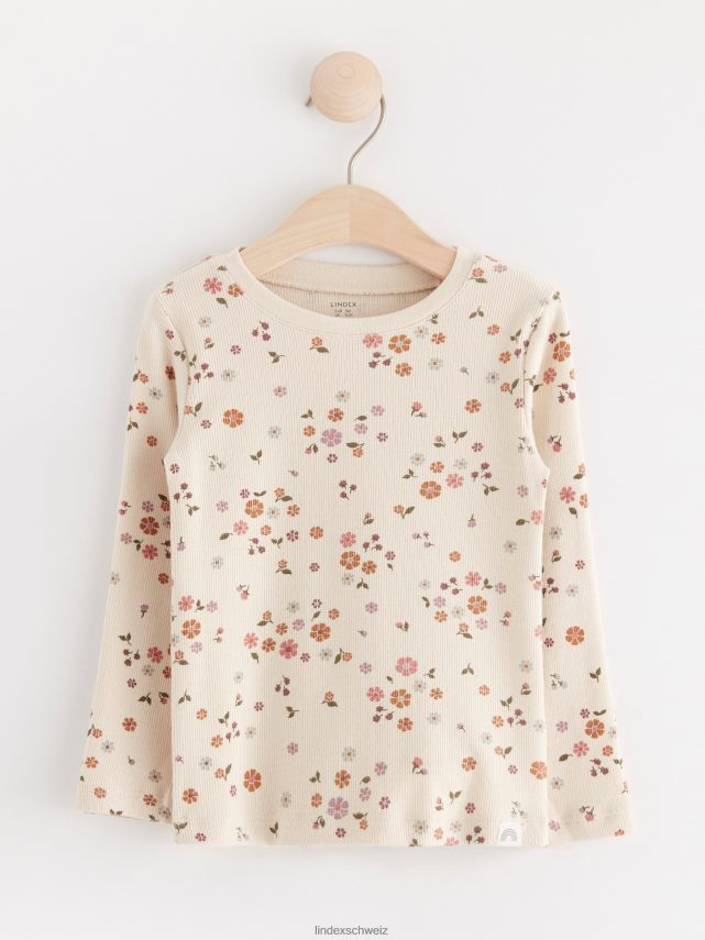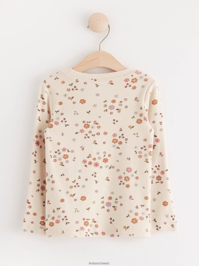 top côtelé imprimé fleurs beige clair Lindex vêtements bébé D44L8F3887