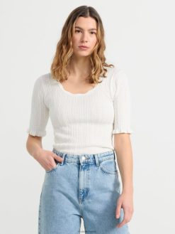 un haut simple mais élégant avec un col en V et une texture froissée sur l’ensemble sur le devant. matériel. cette pièce est fabriquée en écovero Lenzing, une option plus durable par rapport à la viscose conventionnelle. le matériau provient d’une foresterie responsable et est produit avec un impact moindre sur l’environnement.