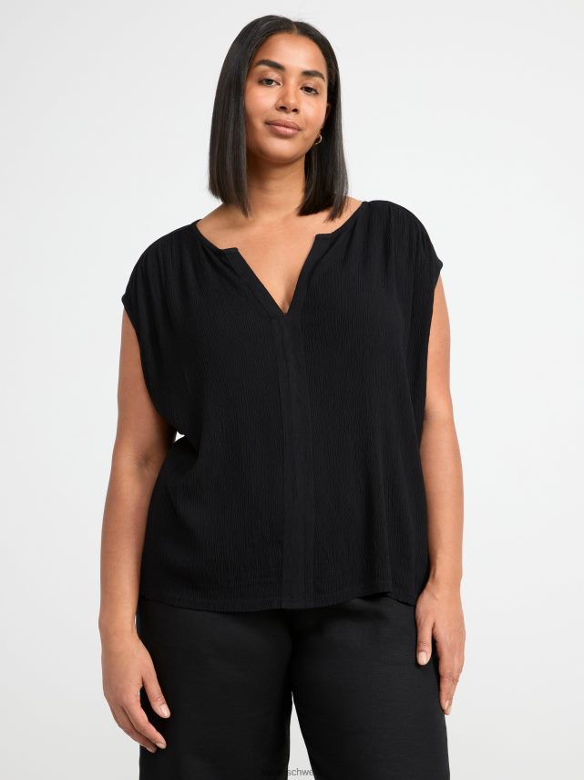 un haut simple mais élégant avec un col en V et une texture froissée sur l’ensemble sur le devant. matériel. cette pièce est fabriquée en écovero Lenzing, une option plus durable par rapport à la viscose conventionnelle. le matériau provient d’une foresterie responsable et est produit avec un impact moindre sur l’environnement.