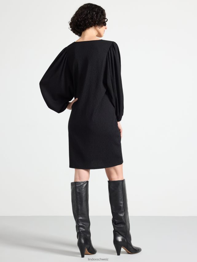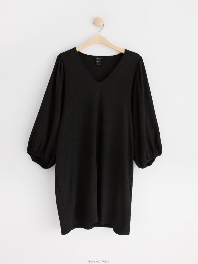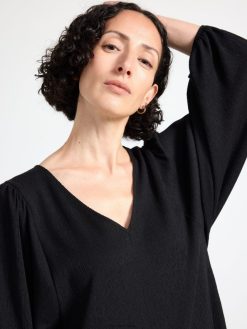 une tunique épurée et stylée avec col en V et manches bouffantes larges.