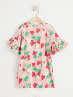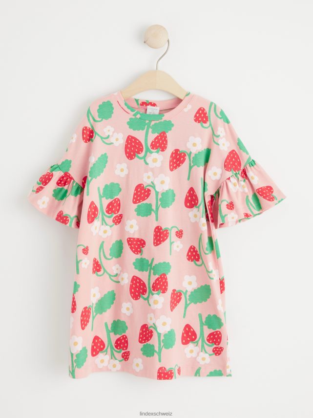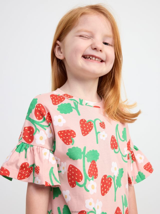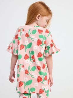 une tunique avec des manches courtes à volants et un imprimé fraise sur toute la surface. matériel. c’est une pièce certifiée Gots. il est fabriqué à partir de coton biologique et chaque étape de la production a été certifiée de manière indépendante pour garantir qu’elle respecte les exigences sociales et environnementales de Gots (norme mondiale des textiles biologiques).