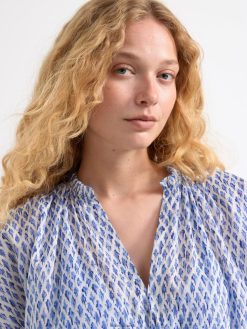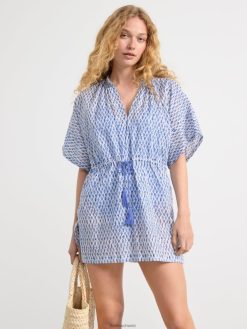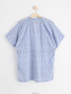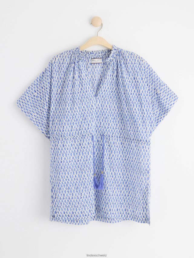 une tunique douce à manches courtes avec des manches courtes et larges et des bandes à nouer avec des pompons à la taille.