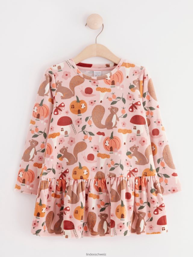 tunique confortable en velours à manches longues, encolure ronde et volant.