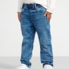 Jean confortable avec des jambes larges et fuselées et une taille classique réglable. confectionné dans un denim robuste légèrement extensible. ces jeans sont fabriqués selon des processus d’économie d’eau et d’énergie.