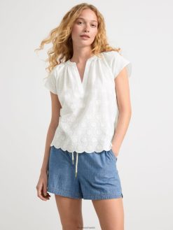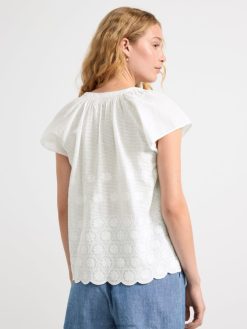 chemisier à manches courtes avec broderie blanc cassé Lindex vêtements femmes D44L8F475