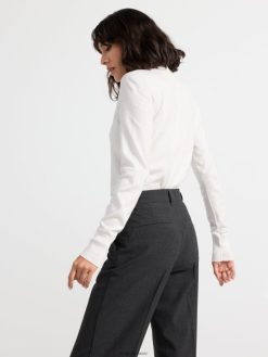 haut à manches longues avec col volanté blanc cassé Lindex vêtements femmes D44L8F301