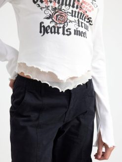haut à manches longues avec imprimé et mesh blanc cassé Lindex vêtements enfants D44L8F2750