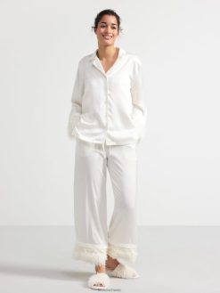 ensemble pyjama en satin avec fausses plumes blanc clair Lindex vêtements femmes D44L8F2118