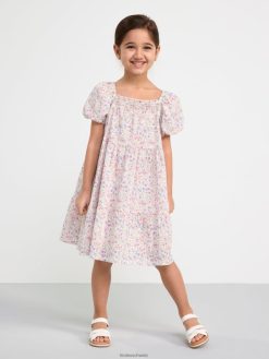 robe à manches bouffantes et fleurs blanc légèrement poussiéreux Lindex vêtements enfants D44L8F3101