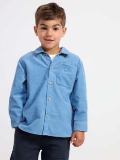 chemise en velours côtelé bleu clair poussiéreux Lindex vêtements enfants D44L8F3001