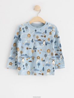 haut à manches longues avec motif bleu clair poussiéreux Lindex vêtements bébé D44L8F4101