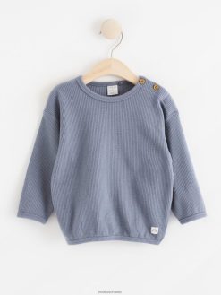 haut gaufré à manches longues bleu poussiéreux foncé Lindex vêtements bébé D44L8F4289