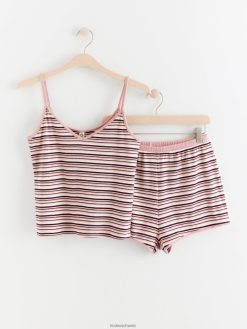 ensemble pyjama côtelé avec caraco et short rose poussiéreux Lindex vêtements femmes D44L8F2159