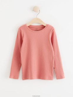 haut côtelé avec col volanté rose poussiéreux Lindex vêtements enfants D44L8F2768