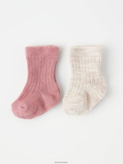 Lot de 2 chaussettes côtelées en laine mélangée rose poussiéreux Lindex accessoires bébé D44L8F4220